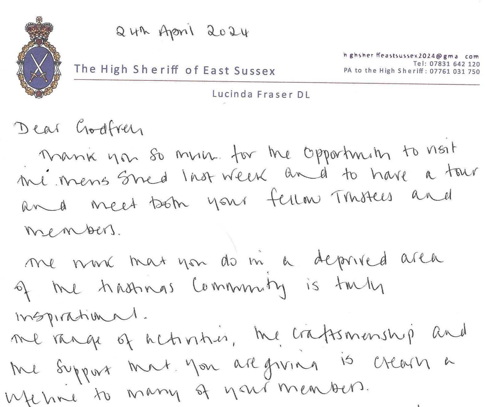 A recent visit (April 2024) by Lucinda Fraser, the High Sheriff of East Sussex